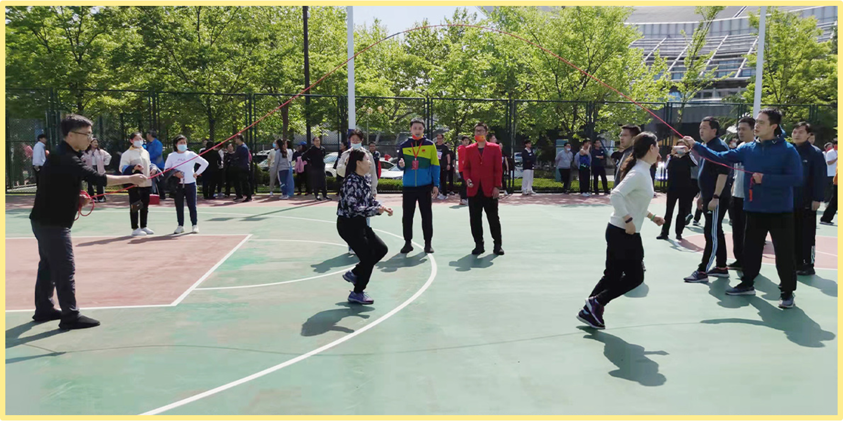 尹星、李菲菲、高荣老师参加趣味项目-八字跳绳