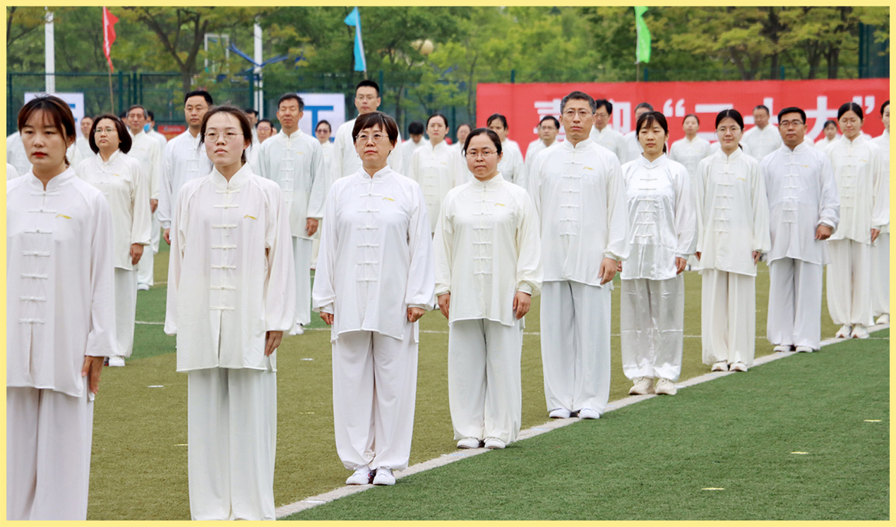 1. 参加入场式方阵和太极拳展演老师:王文华、李菲菲、高荣、陈雷 2. 参加教职工运动会趣味项目老师:尹星、李菲菲、高荣、时金华、王志华、殷述广、单英晋、郭嘉 | ||||