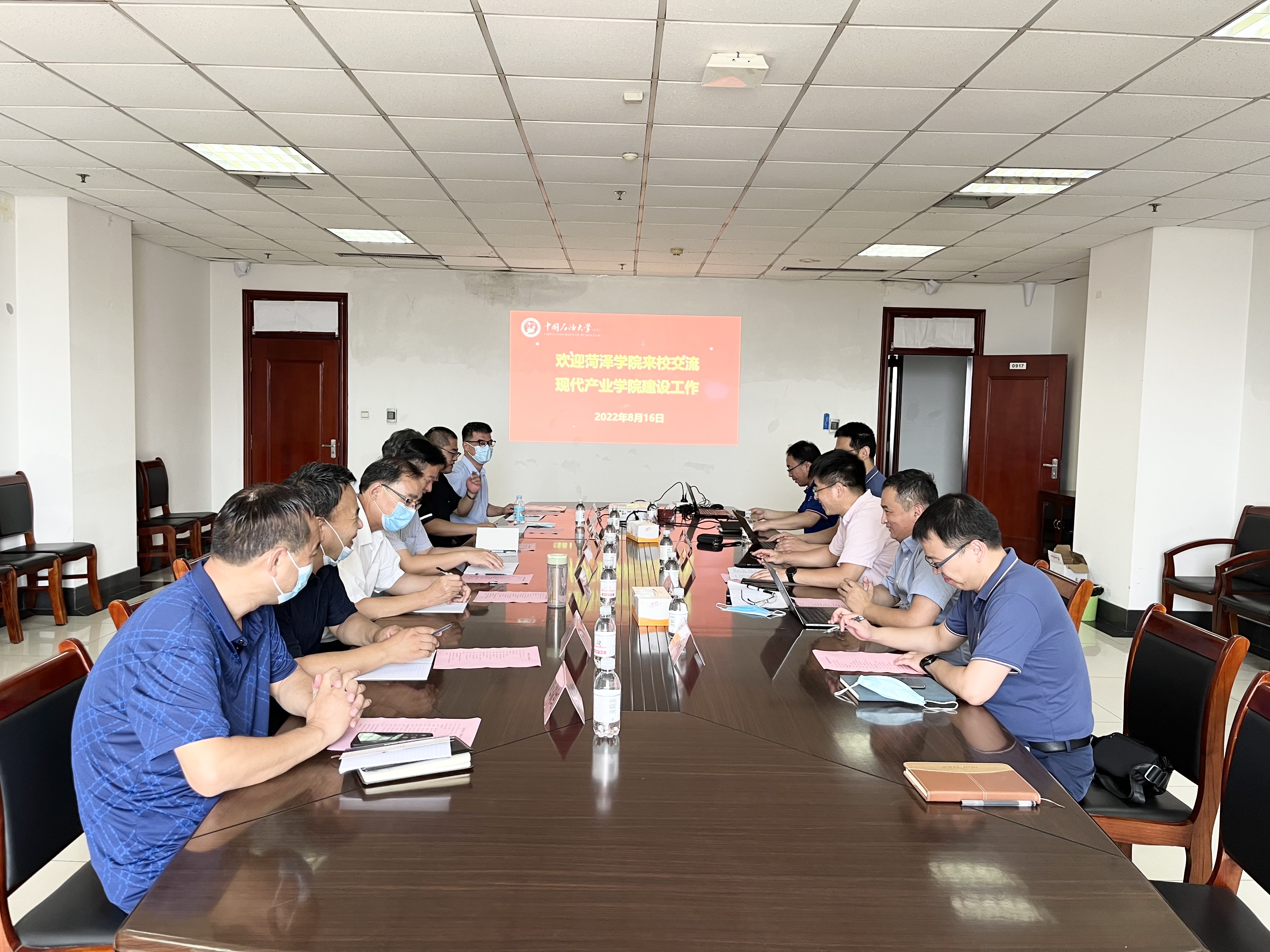 8月16日,菏泽学院教务处处长田智祥等一行7人来校调研现代产业学院建设工作。教务处处长侯影飞、副处长黄善波,化学化工学院副院长刘义,机电工程学院副院长徐长航,教务处相关科室人员与来宾座谈。