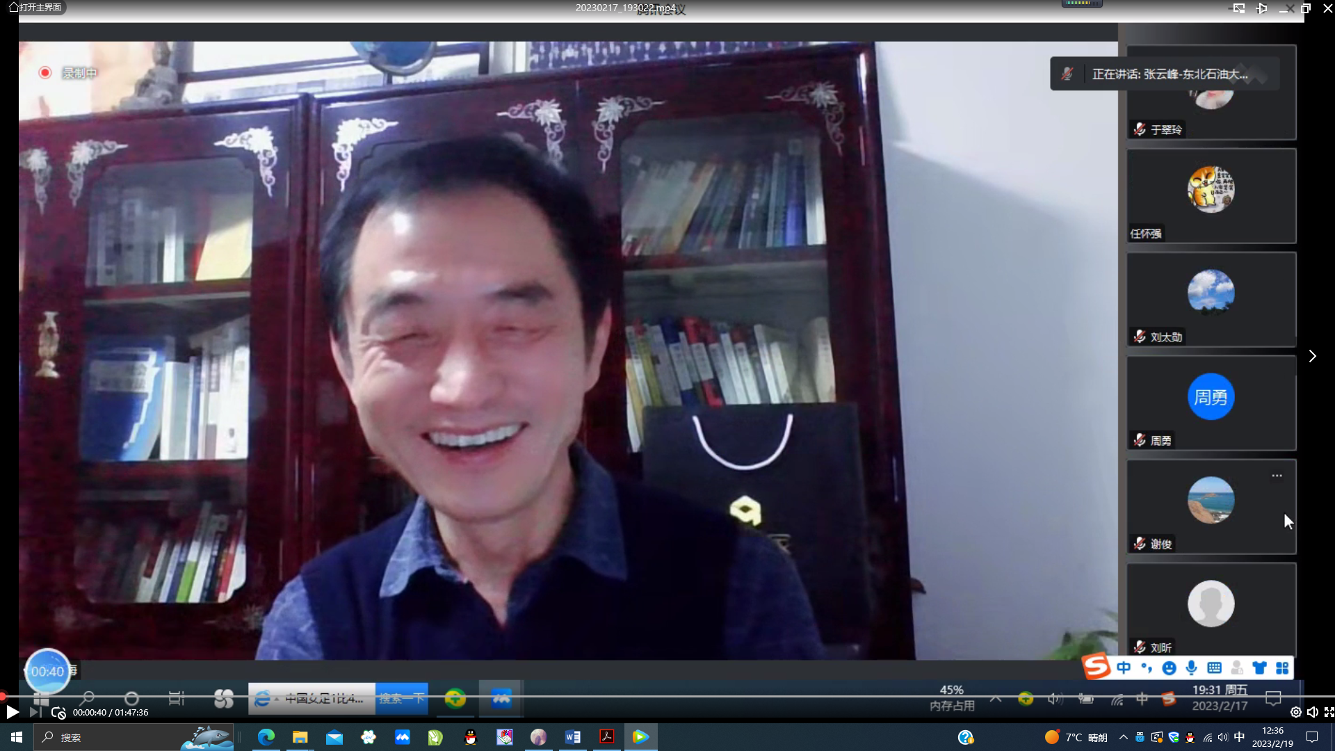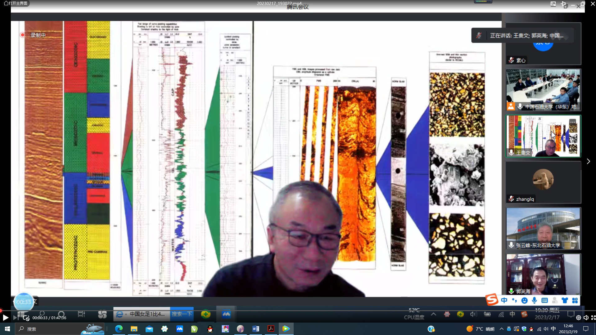 为完成课程思政示范课程数字化资源建设、加强审核把关、发掘和转化典型经验,2月17日,教育部地质学类教指委举办了“油田开发地质学”国家级课程思政示范课专家点评与交流会,也是教育部“油气田开发地质学”课程虚拟教研室的一次学习研讨会。地质学类教指委邀请了5位委员进行该课程建设资料的审核把关、会议点评与交流,本次邀请的专家包括:中国石油大学(华东)副校长操应长教授、中国矿业大学资源与地球科学学院郭英海教授、中国石油大学(北京)地球科学学院院长王贵文教授、吉林大学地球科学学院院长单玄龙教授和东北石油大学地球科学学院院长张云峰教授。我校油田开发地质课程团队以及来自山东科技大学、中国石油大学(北京)等兄弟高校的“教育部油气田开发地质课程虚拟教研室”骨干教师参加了本次专家点评和交流会,会议由教育部地质学类教指委副主任、中国石油大学(华东)副校长操应长教授主持。