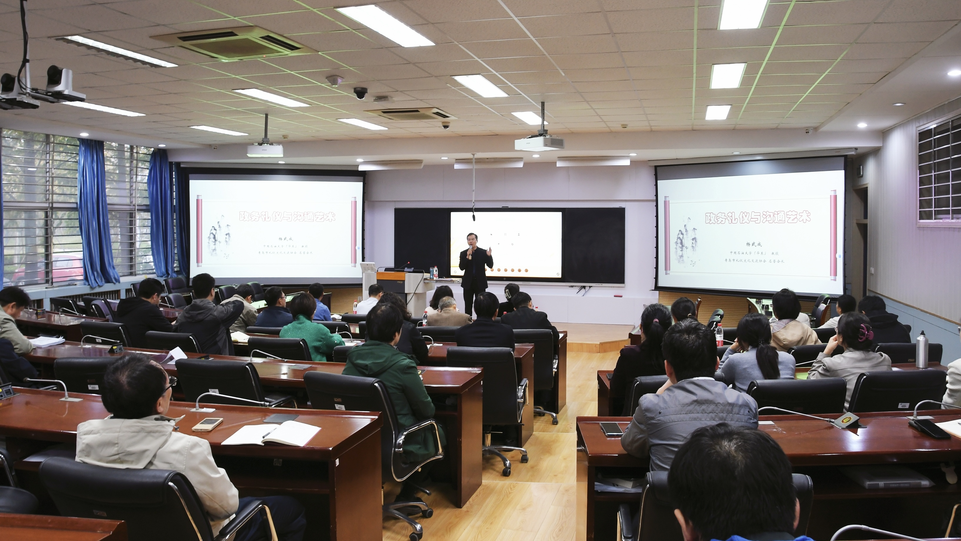 此次活动邀请了海空学院专职组织员杨武成教授作“政务礼仪与沟通艺术”报告。杨武成教授是高级礼仪培训师,现兼任青岛市礼仪文化交流协会名誉会长,拥有多年的礼仪培训经验,曾承担过上合峰会、奥运会等大型国际会议赛事礼仪培训工作。在报告中,他详细介绍了礼仪的基本概念与特点功能、仪容仪表仪态表情、政务礼仪以及沟通礼仪等内容,并通过丰富案例,让大家深入了解政务礼仪与沟通的要点。参与活动的学员纷纷表示,通过这次培训学到了政务礼仪的内涵以及有效沟通的方式方法,对今后工作生活中的人际交往具有很强的指导意义,为提升个人职业素养、塑造良好职业形象、高品质服务师生起到了促进作用。