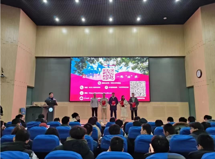 随后,荣获2023年学生招生宣传大使活动优秀个人和团队代表分享了开展活动的经验和故事。他们从自身经历出发,阐述了学校独特的教育理念和优秀的校园文化,为同学们讲解了实操过程中需要准备和注意的事项,并围绕整个活动详细介绍了前期准备工作、宣讲过程、实用的经验方法,激励新一批大使们要积极投身于这项光荣而重要的任务中。分享前,学校为优秀个人和团队颁发了荣誉证书及奖品,并鼓励同学们多加学习,以石大为荣,为学校发展贡献更多的力量。