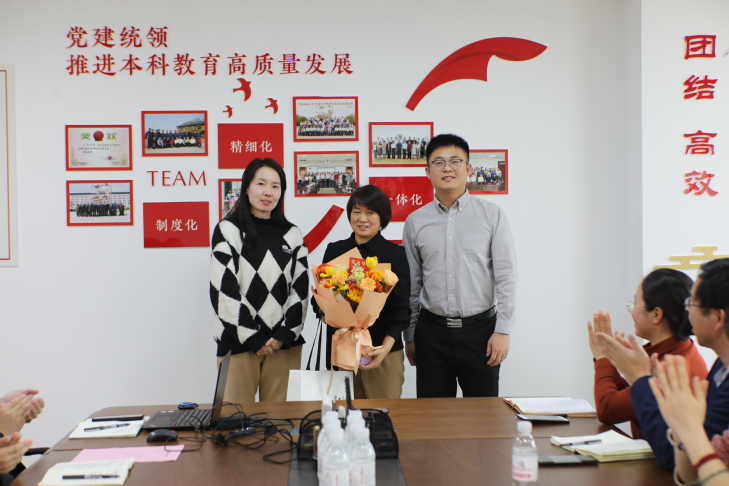 李瑞雪老师表达了对学校所有领导同事的感谢,对于大家的肯定与赞誉,她表示仅仅是做了应该做的事,与优秀的教务人为伍,未虚度人生而已。并结合副校长周鹏在主题教育专题党课中提出的坚持人民至上、坚持自信自立、坚持守正创新、坚持问题导向、坚持系统观念、坚持胸怀天下“六个坚持”,分享了本质思考、慎微观世、从容做事、和诚待人以及坚持学习积累的个人感悟,表示退休后将依然心系人才培养,继续关注和支持教务处的发展,祝愿学校本科教育高质量发展,取得更好的成绩。