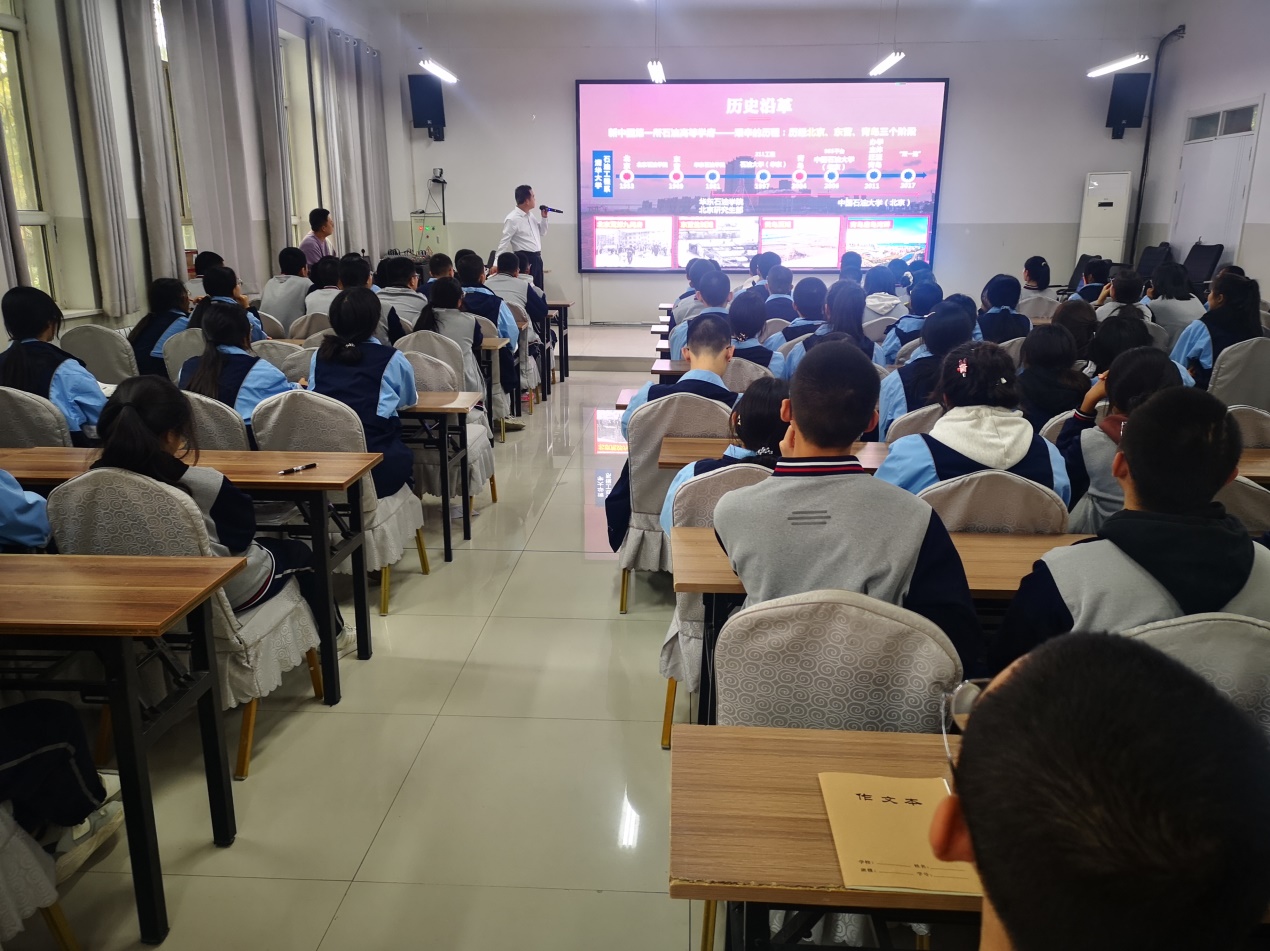 在我校援疆教师刘复玉和2005届校友张延安的协助下,基地回访和招生宣传各项活动顺利开展。活动现场中,招生组与高中学子面对面交流,从我校概况、专业特色、人才培养、新疆招生分数线等方面进行详细讲解,耐心解答同学们的问题,同时鼓励同学们努力学习,不断提升自我。本次宣讲活动也让同学们对中国石油大学(华东)有了更深入的了解,进一步提升了我校在新疆考生中的认知度。