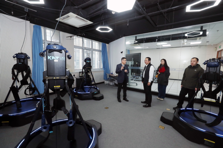 座谈会前,张磊一行参观教育发展中心,深入了解学校继续教育发展历程、办学条件和发展成果。
