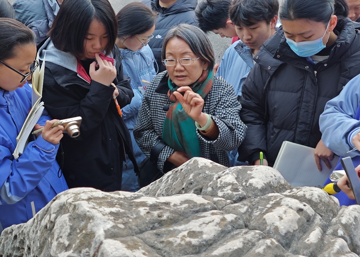 在身边发现科学,在校园开展地质考察。地球科学与技术学院袁静教授在青岛九中的校园开展了一场别开生面的矿物岩石研学游,她用通俗易懂的语言,将岩石的形成历程、具体的分类方法以及显著的特点娓娓道来,让同学们置身于奇幻的地质世界之中,并作了《让岩石为地质作用代言》的专题讲座,师生互动氛围热烈。