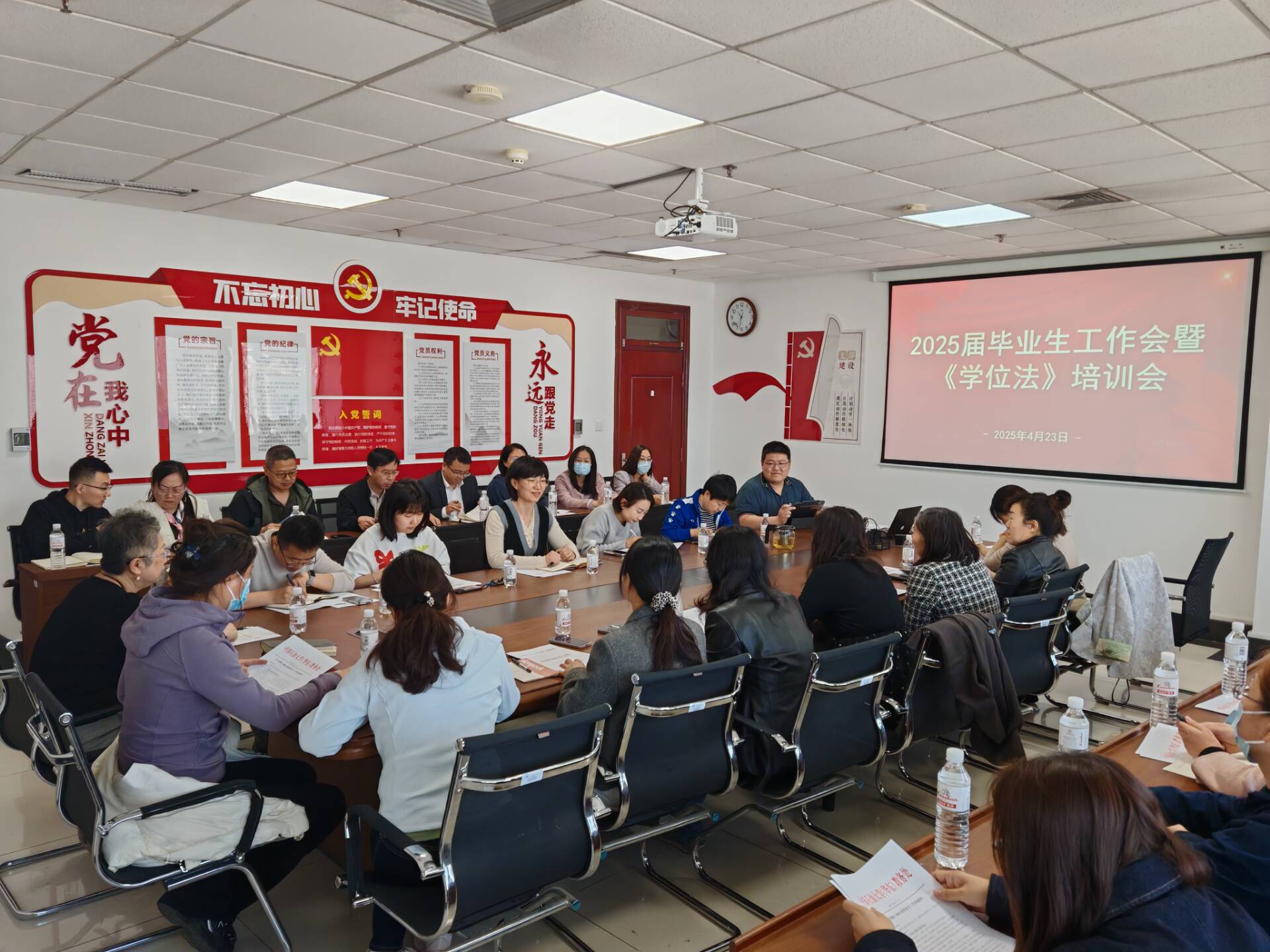 4月23日,学校召开2025届毕业生工作会暨《学位法》培训会,各学院教学管理人员、教务处相关科室参加会议。
