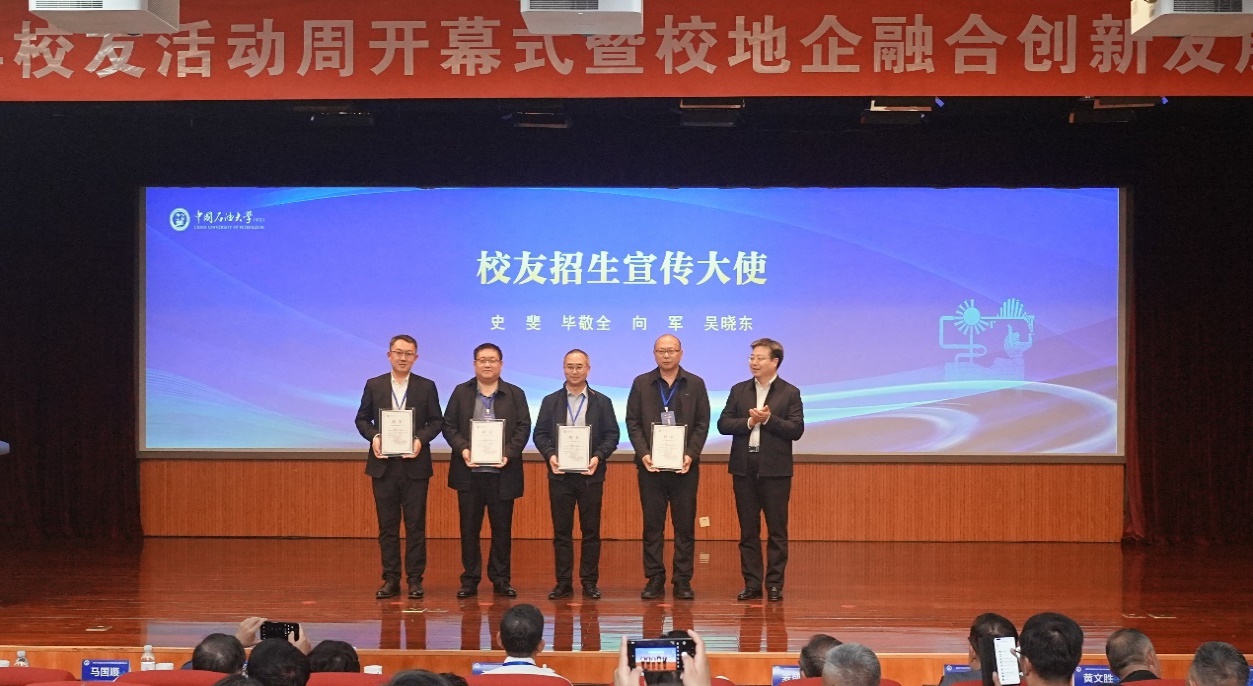 学校每一步发展都离不开校友们的关心与支持,自2022年起,学校在广大校友中积极动员,招募校友招生宣传大使,协助学校做好招生宣传工作。本年度来自全国各地的42名校友受聘为 “2025年校友招生宣传大使”,在20余座城市协助展开招生宣传活动,既拓展了学校招生宣传的覆盖面,又发挥出石大校友的榜样效用,共同传承“家国同心 艰苦奋斗 惟真惟实 追求卓越”的石大精神,吸引更多优秀学子加入中国石油大学(华东)大家庭!